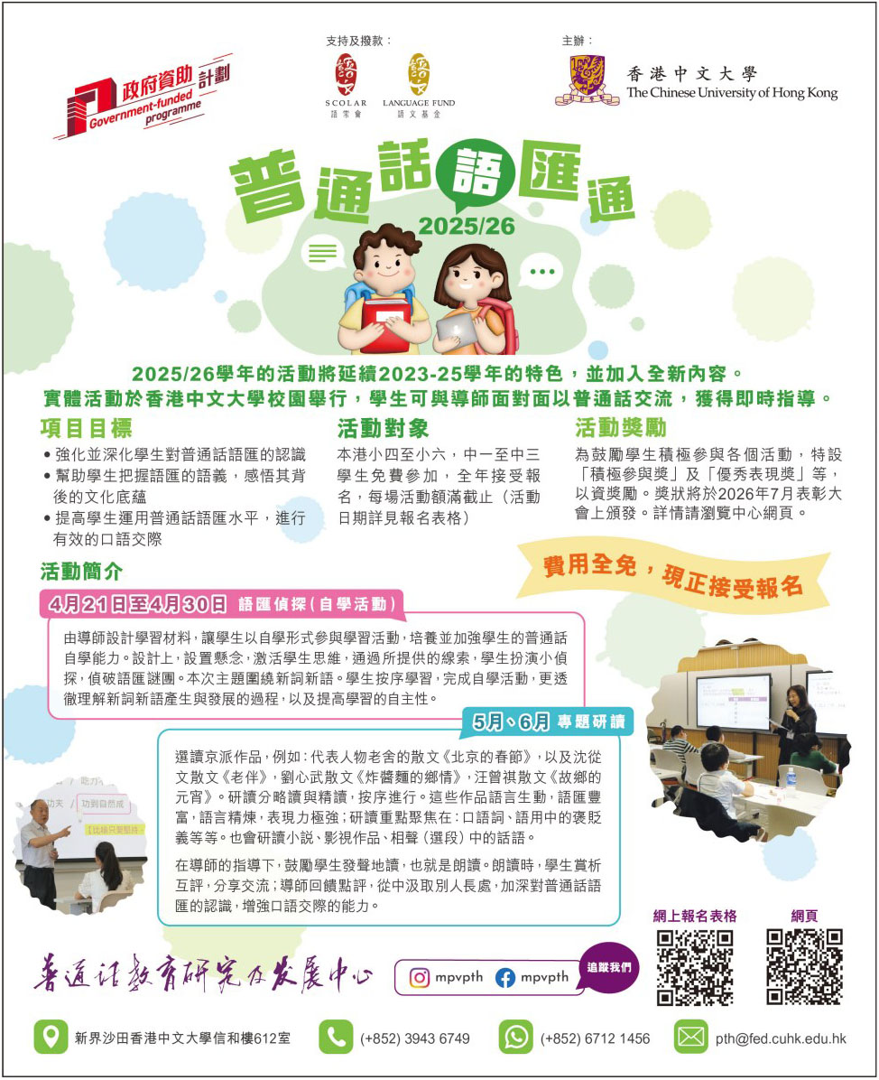 香港中文大學 CUHK 普通話語匯通課程 費用全免hijet hijet2026-04-16每日Jetso優惠 Jetsoeatplaybuy 為香港人搜羅各類最新優惠、飲食推介及購物資訊,幫你慳錢之餘亦提升生活質素。 標籤# CUHK# 免費課程# 普通話# 語匯通# 香港中文大學 分享你的喜愛 hijet hijet 文章: 1734 上一 文章 四洲 Four Seas 最新優惠情報 下一 文章 Klook 獨家優惠:珠海香洲及橫琴新開英迪格酒店低至 68 折,平價豪住體驗