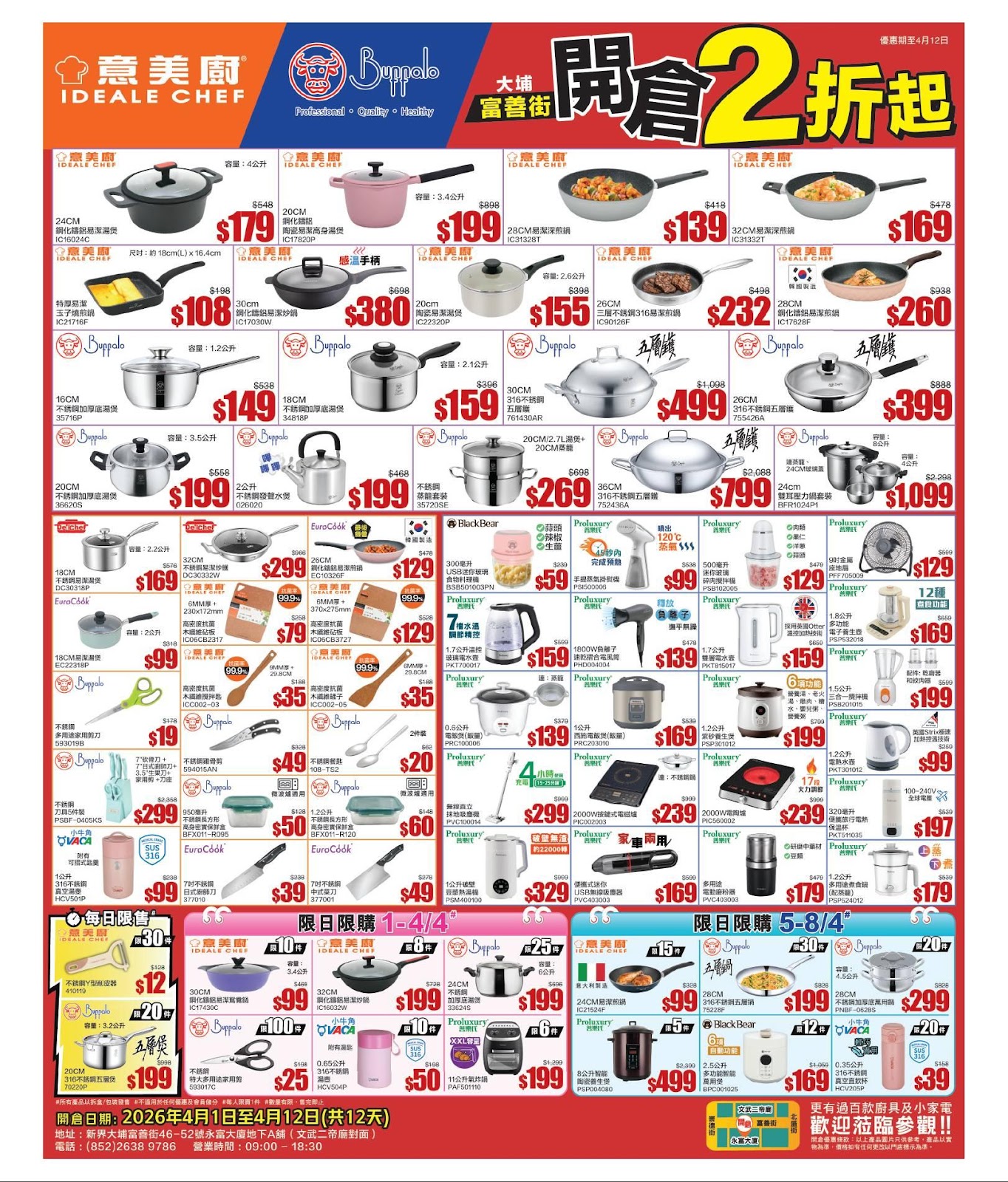 意美廚 Ideale Chef 與 Buffalo 牛頭牌最新優惠情報hijet hijet2026-04-01每日Jetso優惠 Jetsoeatplaybuy 為香港人搜羅飲食、玩樂同購物著數情報,集中更新各類本地優惠資訊。 標籤# Buffalo# Ideale Chef# 優惠# 意美廚# 牛頭牌 分享你的喜愛 hijet hijet 文章: 1660 上一 文章 Klook 北京賞春之旅:人氣主題樂園與歷史古蹟一次暢玩 下一 文章 Klook 復活節快閃優惠:沙田萬怡酒店自助晚餐買一送一及第三位$111