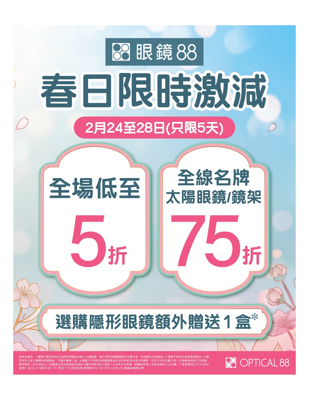 Optical 88 春日限時優惠:眼鏡及太陽眼鏡激減